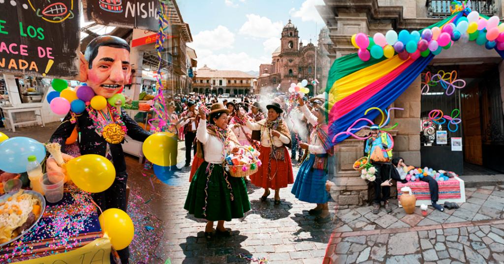 En Cusco, esta festividad se vive con colores, música, agua, humor y tradiciones únicas como el Día de Compadres, Día de Comadres, los muñecos satíricos, el puchero tradicional y el gran pasacalle Kacharpari.